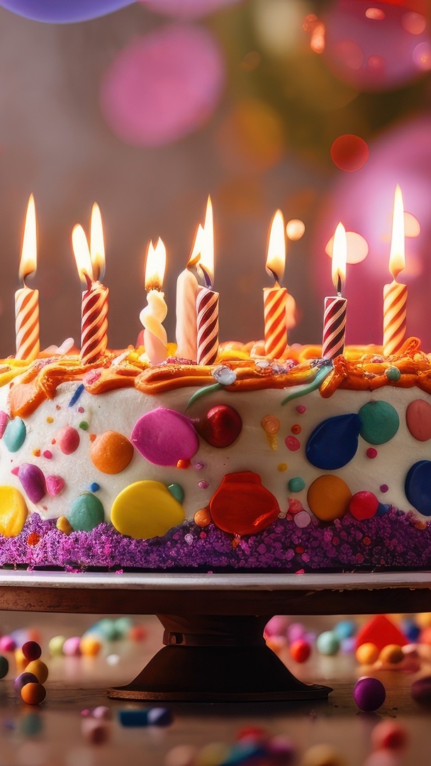 Edytor tapety: Tort urodzinowy z zapalonymi świeczkami
