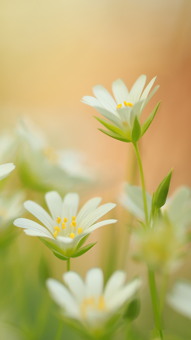 Edytor tapety: Białe kwiaty rogownicy polnej