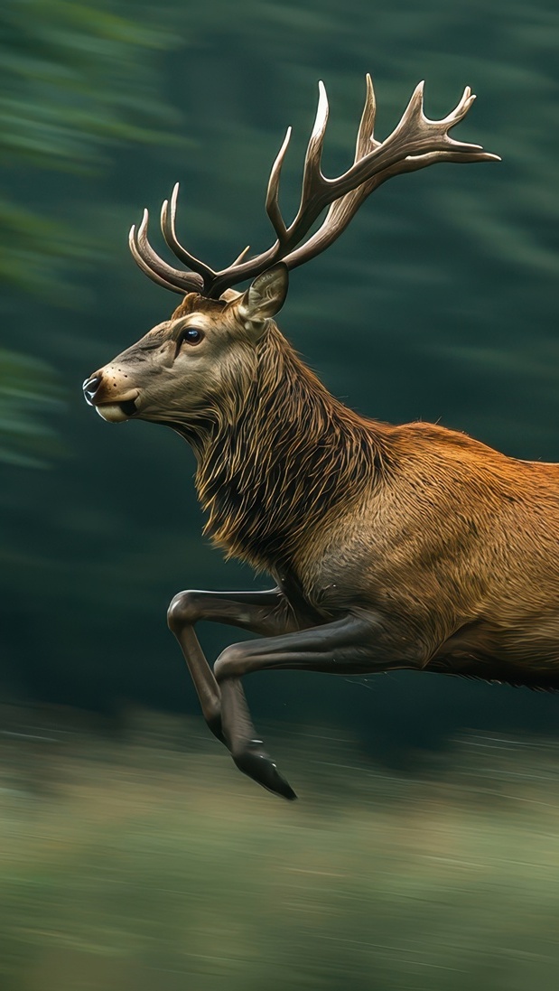 Edytor tapety: Skaczący jeleń na rozmytym tle