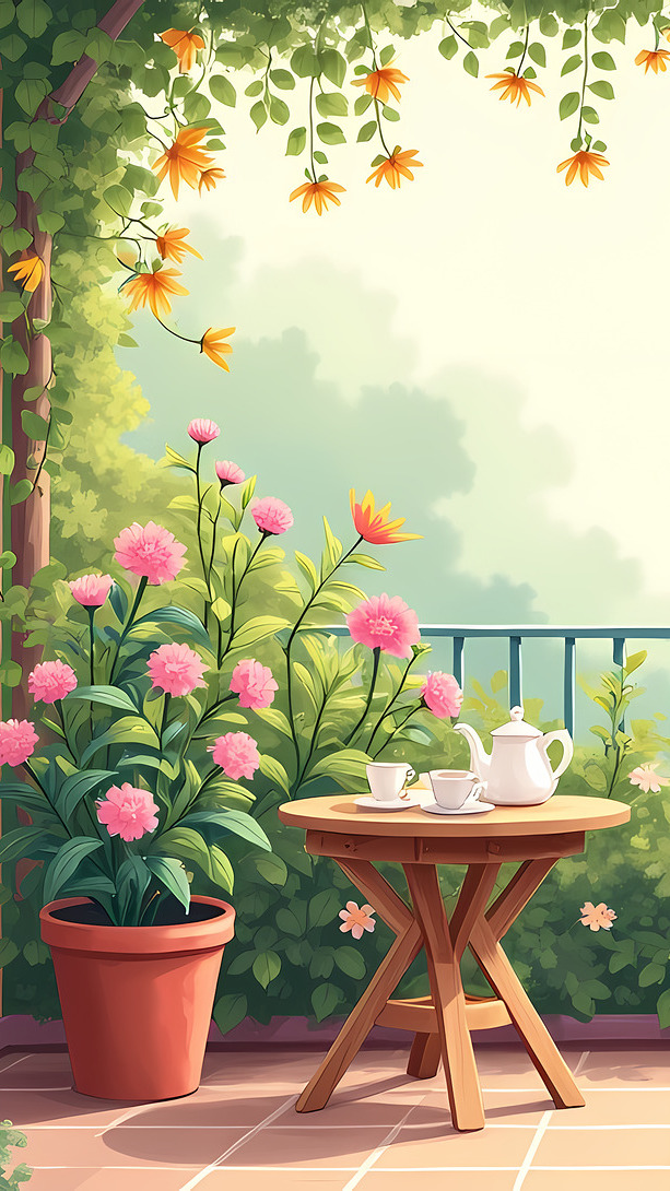 Edytor tapety: Kwiaty i stolik na tarasie