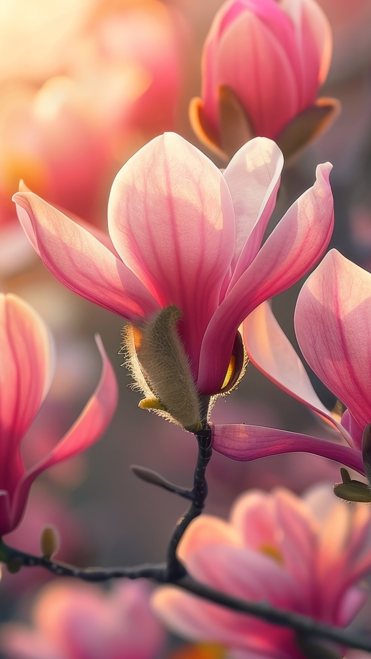 Edytor tapety: Rozświetlone kwiaty różowej magnolii