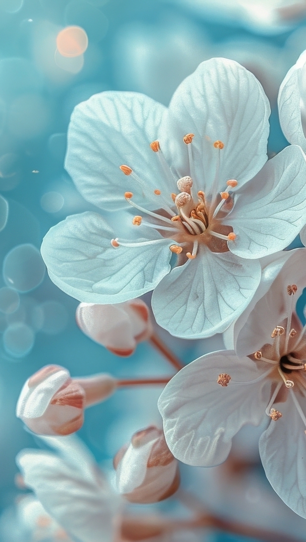 Edytor tapety: Białe kwiaty z pręcikami w zbliżeniu