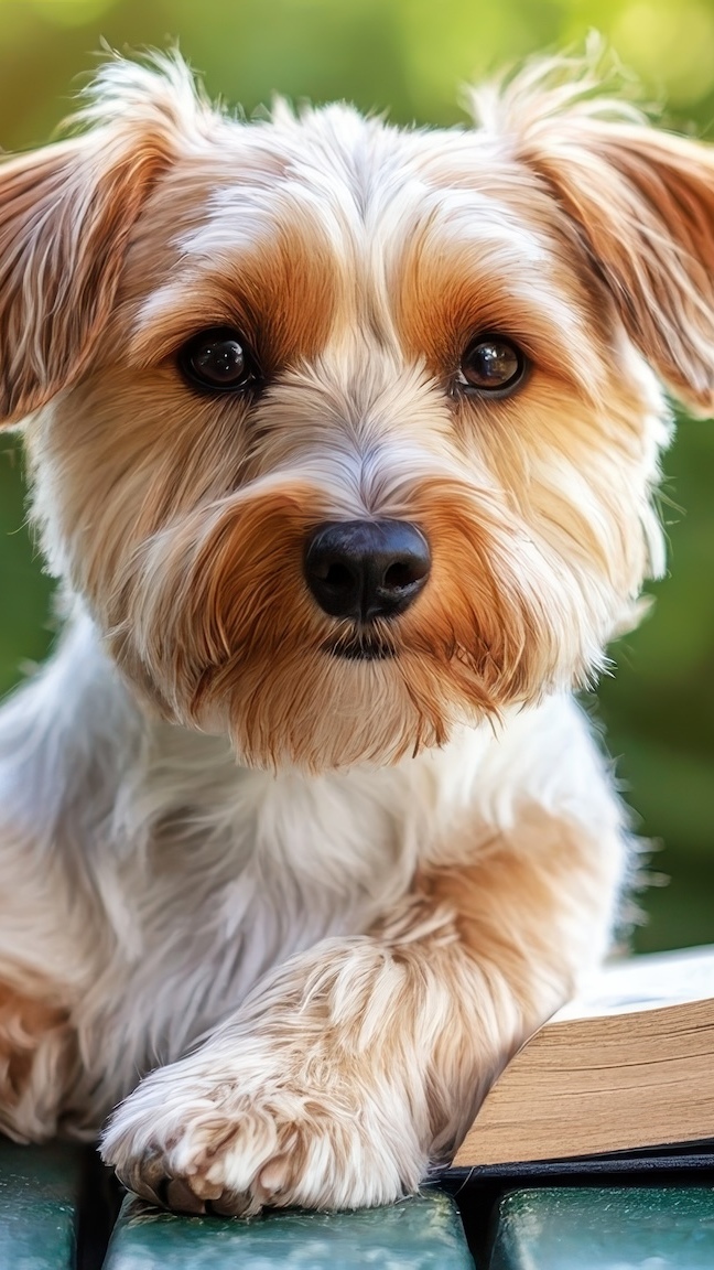 Edytor tapety: Yorkshire terrier z łapką na deskach