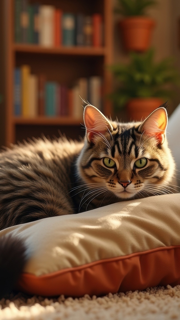 Edytor tapety: Spojrzenie kota leżącego na poduszce