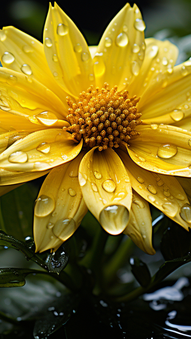 Edytor tapety: Mokry żółty kwiat w zbliżeniu
