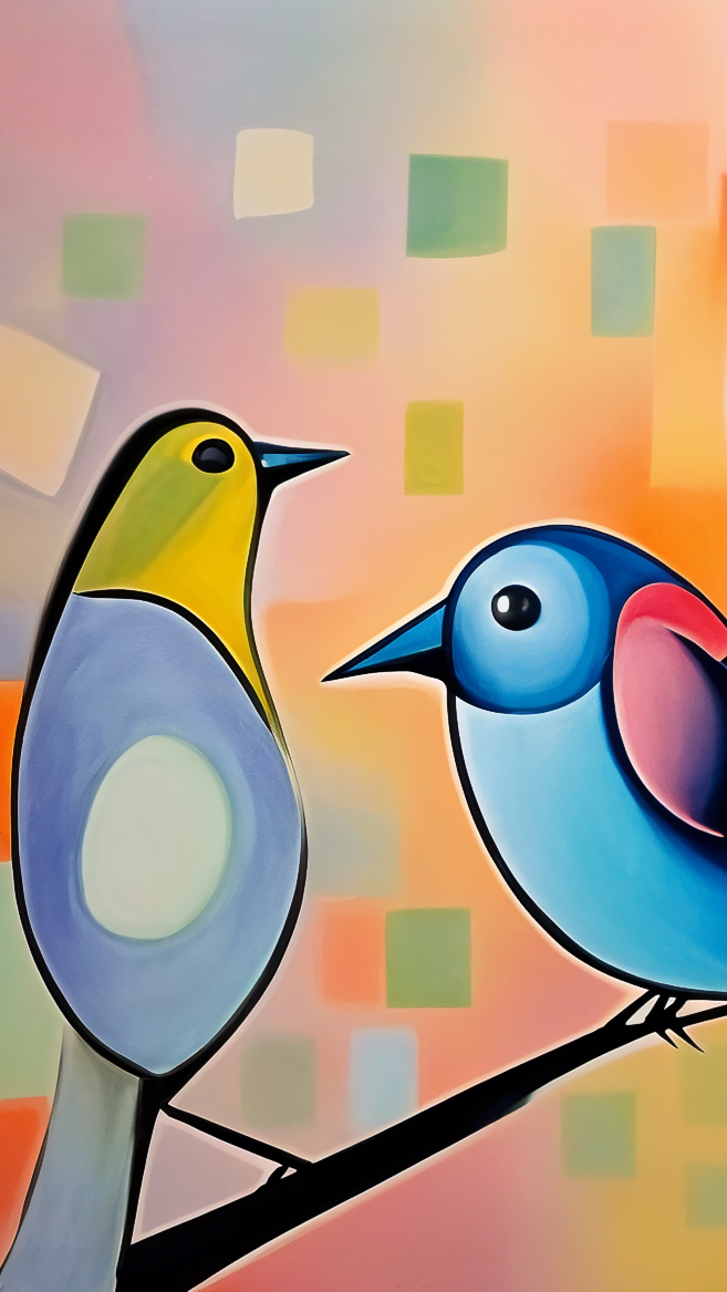 Edytor tapety: Dwa ptaki na gałązce w grafice