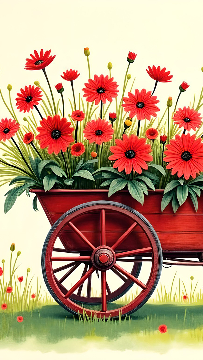 Edytor tapety: Wózek z czerwonymi kwiatami