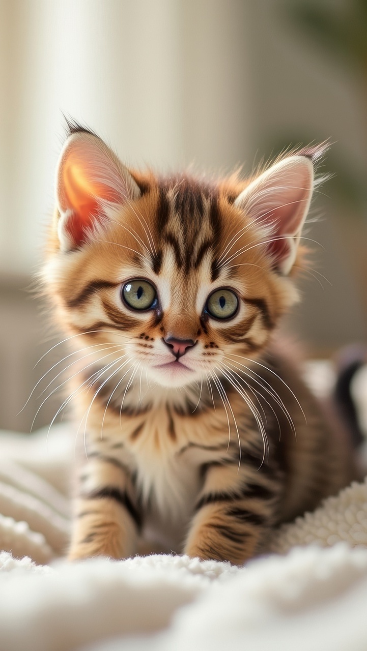 Edytor tapety: Mały pręgowany kotek na kocu