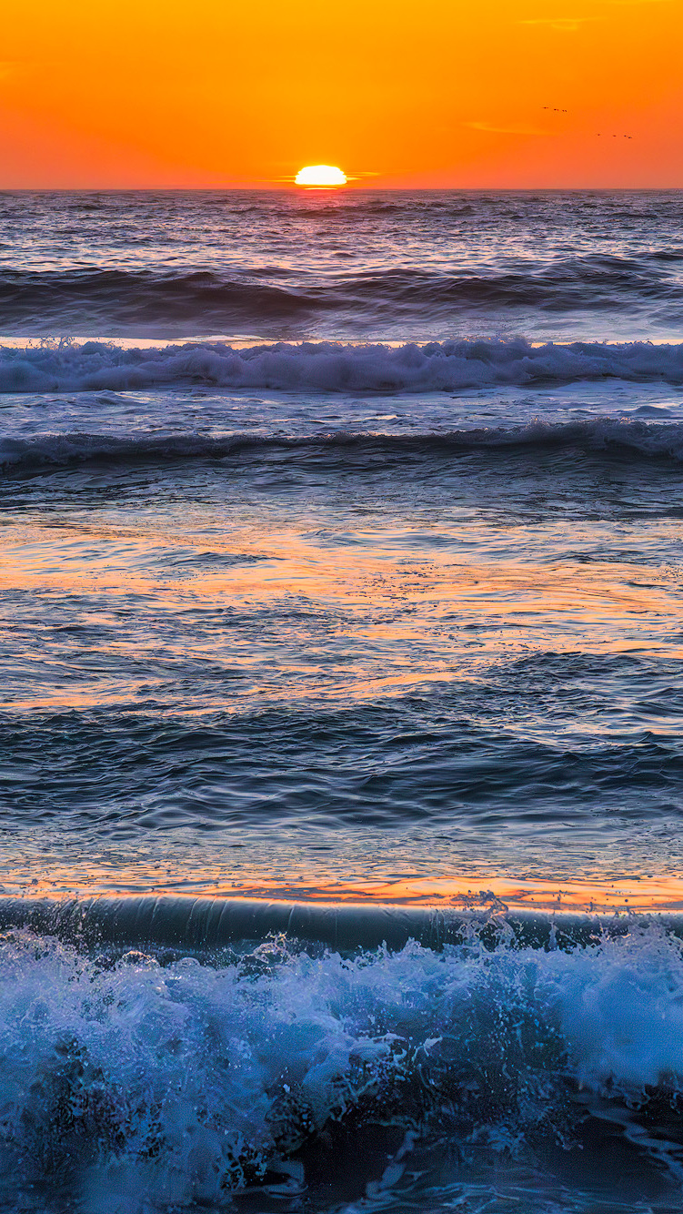 Edytor tapety: Pomarańczowe niebo zachodzącego słońca nad morzem