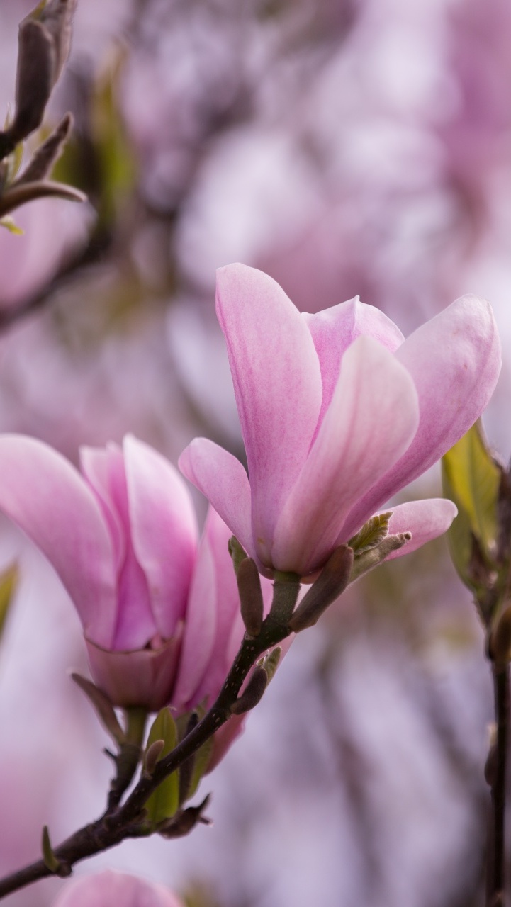 Edytor tapety: Jasnoróżowe kwiaty magnolii w zbliżeniu