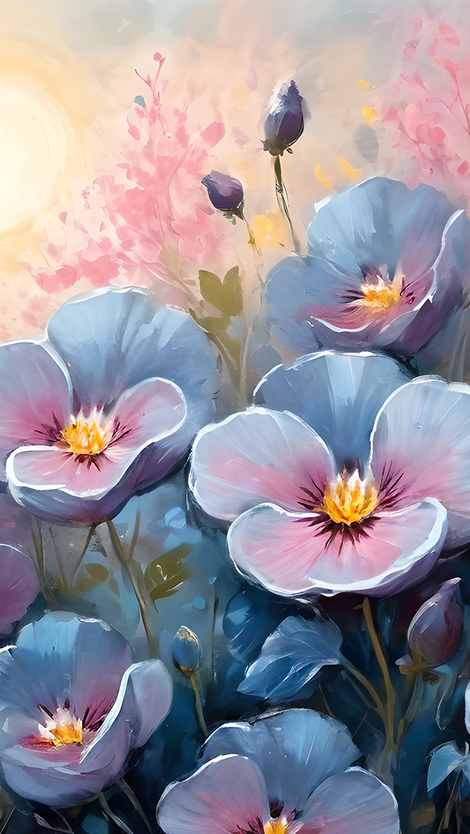Edytor tapety: Niebiesko-różowe kwiaty w grafice