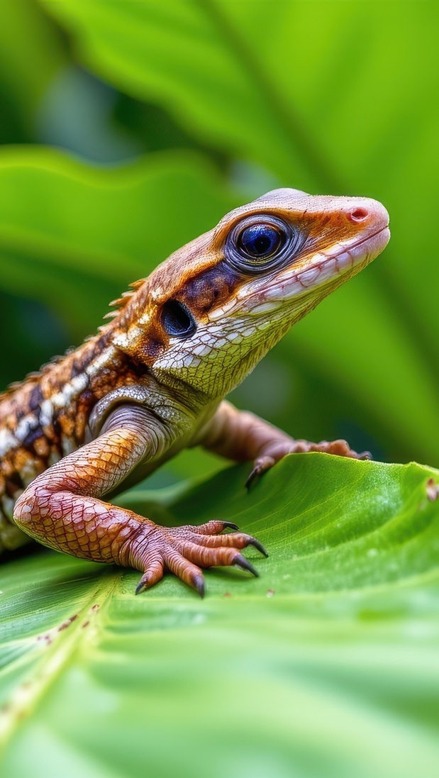 Edytor tapety: Brązowa jaszczurka na zielonym liściu