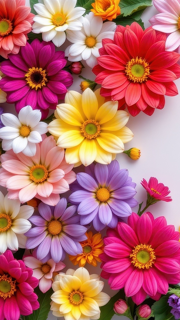 Edytor tapety: Kolorowe kwiaty na jasnym tle