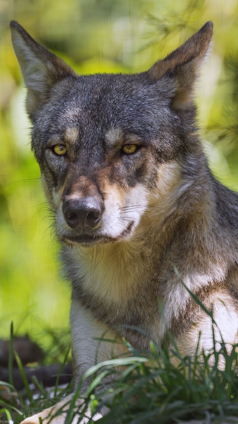 Edytor tapety: Głowa szarego wilka w zbliżeniu