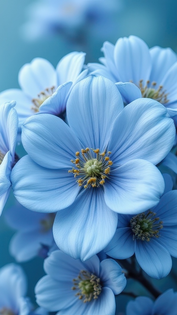 Edytor tapety: Błękitne rozwinięte kwiaty