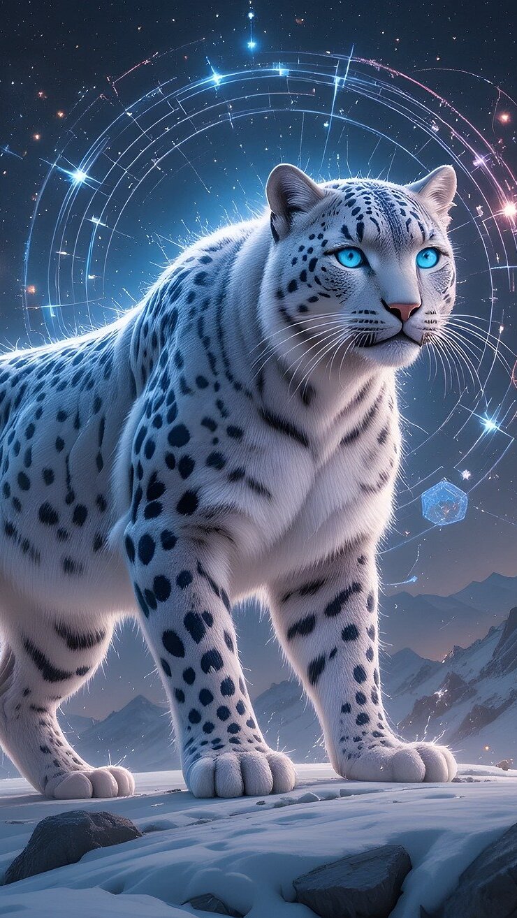 Edytor tapety: Biały lampart na ośnieżonej skale