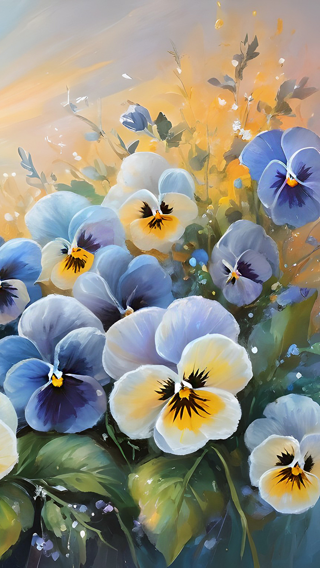 Edytor tapety: Grafika z żółtymi i niebieskimi bratkami