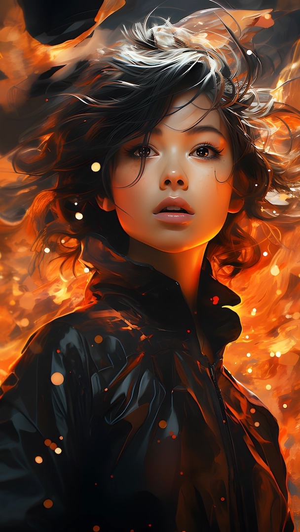 Edytor tapety: Kobieta na tle płomieni