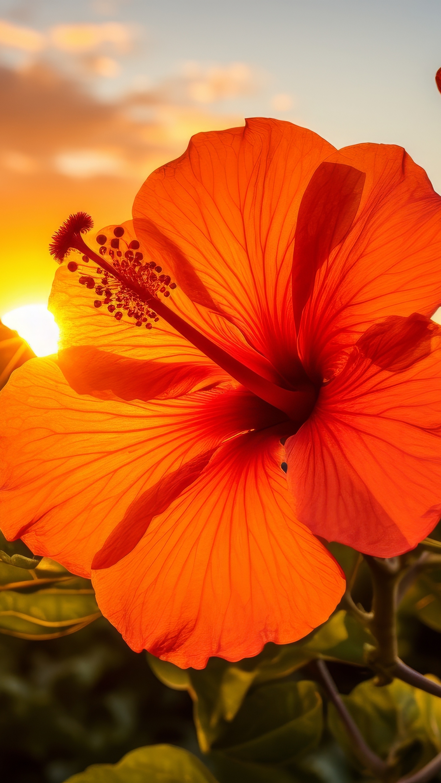 Edytor tapety: Rozświetlony słońcem czerwony kwiat hibiskusa