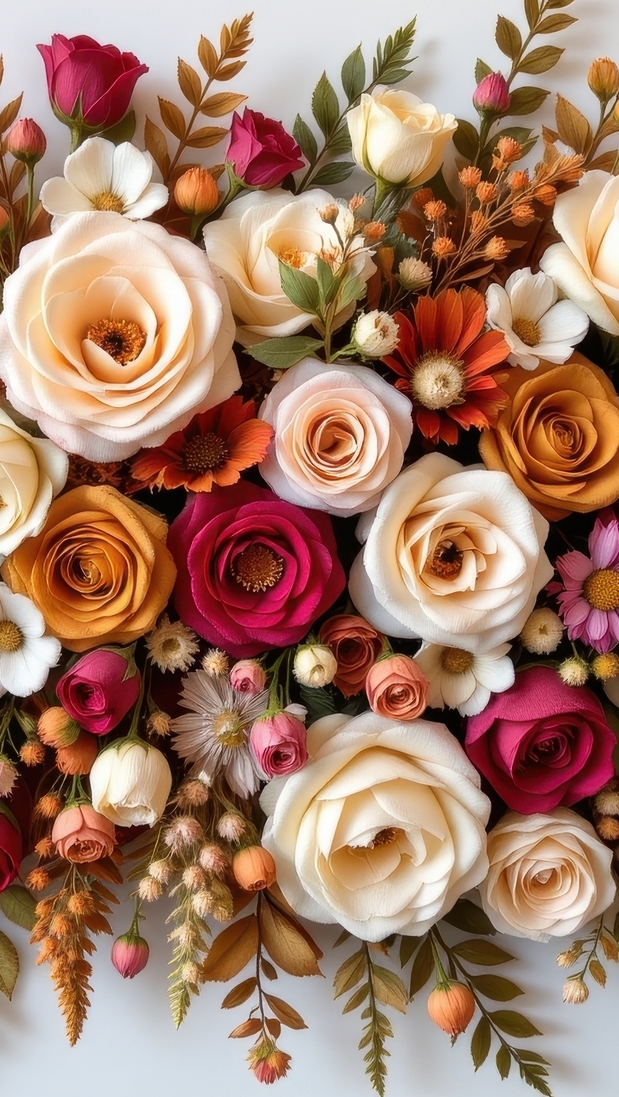 Edytor tapety: Róże i inne drobne kolorowe kwiaty