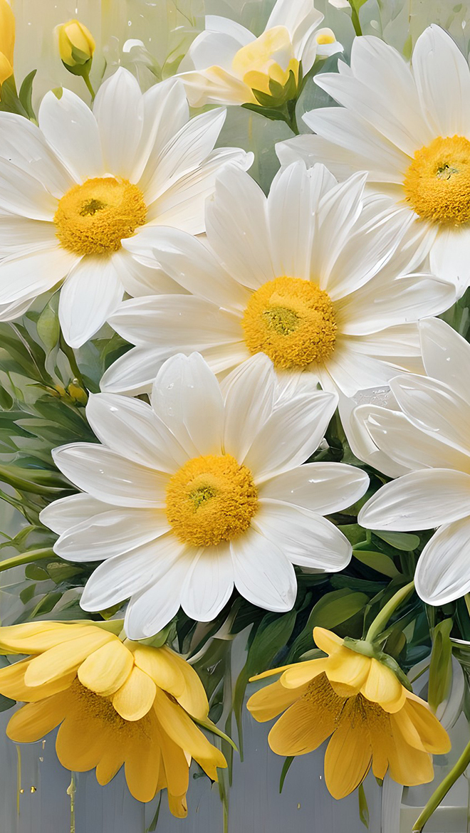 Edytor tapety: Rozwinięte białe i żółte kwiaty
