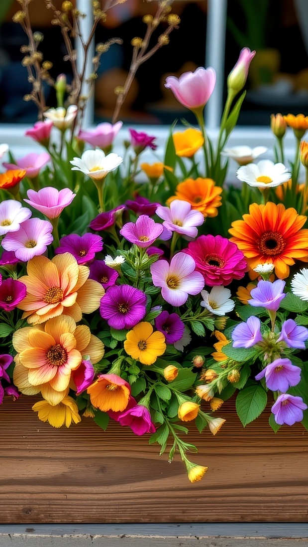 Edytor tapety: Kolorowe kwiaty w drewnianej skrzynce