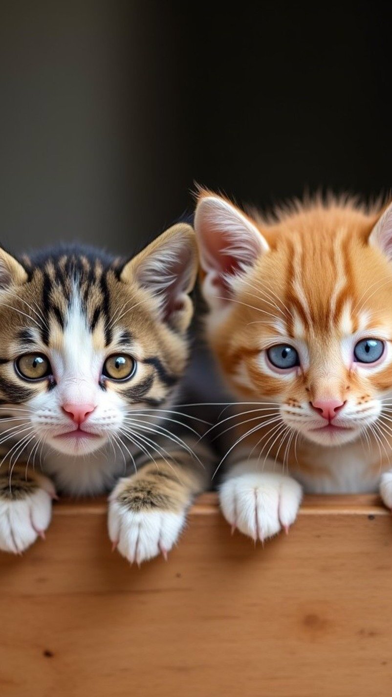 Edytor tapety: Dwa kotki oparte łapkami o deskę