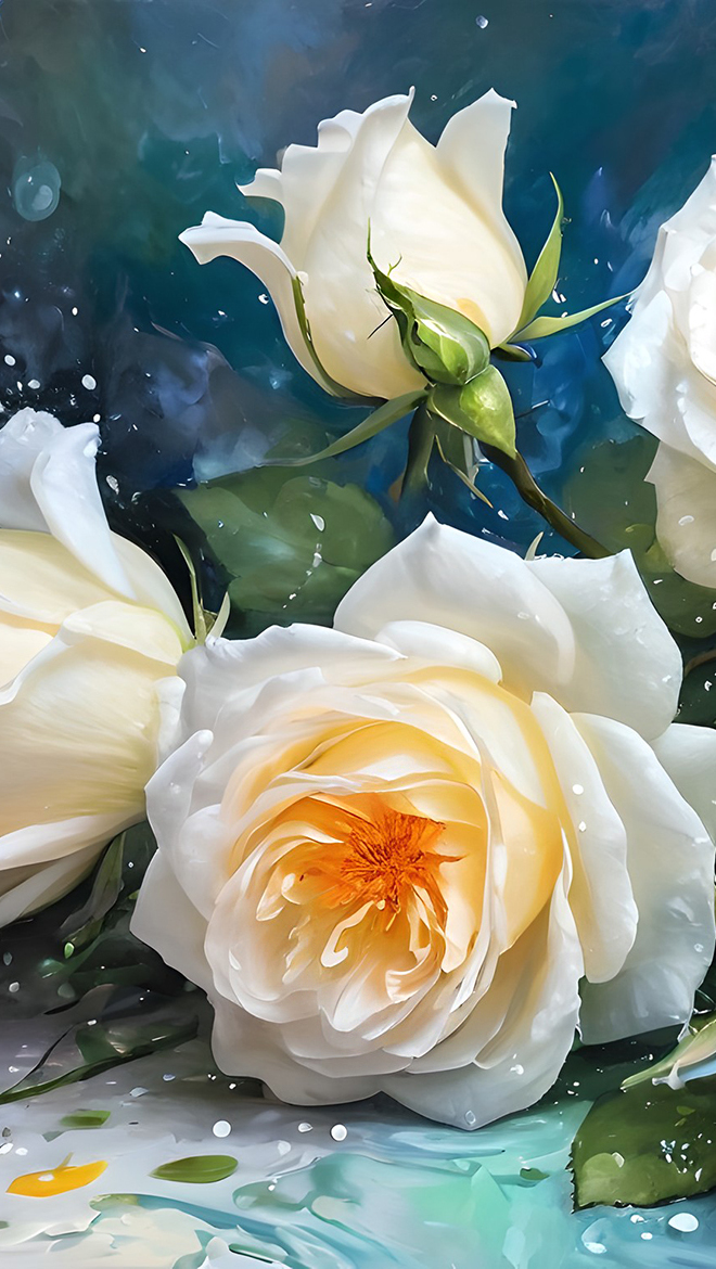 Edytor tapety: Rozkwitnięte biało-kremowe róże w grafice