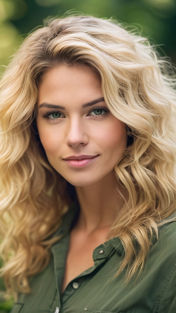 Edytor tapety: Uśmiechnięta długowłosa blondynka