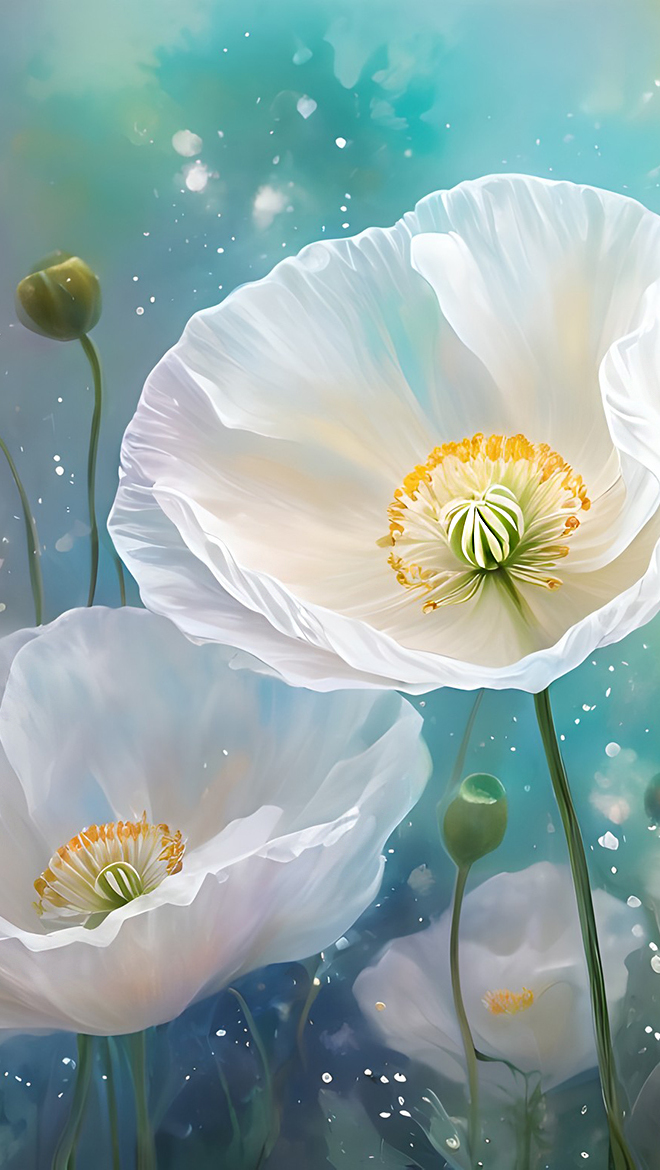 Edytor tapety: Dwa rozwinięte białe maki z pąkami