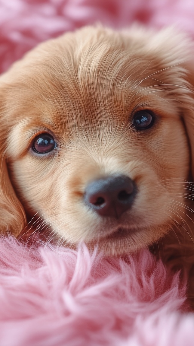 Edytor tapety: Mordka szczeniaka na różowym kocu