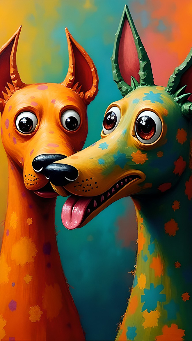 Edytor tapety: Dwa kolorowe psy w grafice