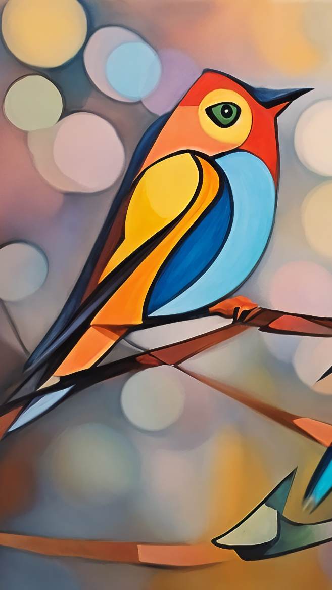 Edytor tapety: Grafika z kolorowym ptakiem na gałązce