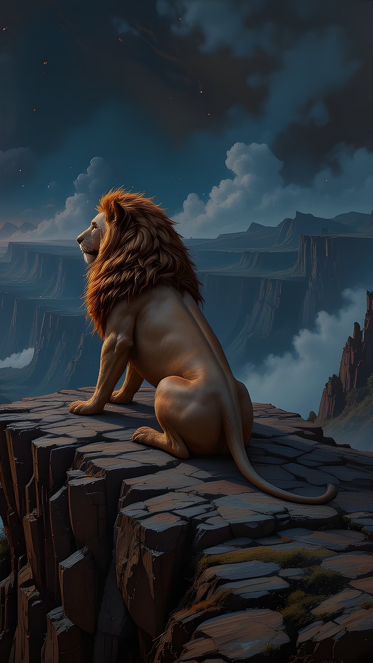Edytor tapety: Lew siedzący na skale w grafice