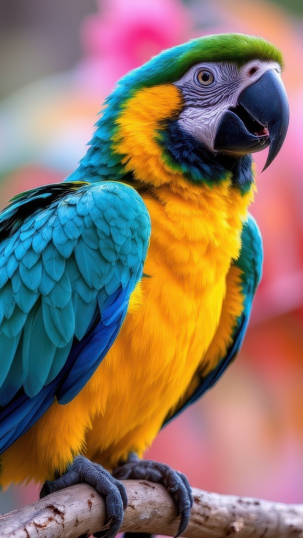 Edytor tapety: Żółto-niebieska ara w zbliżeniu