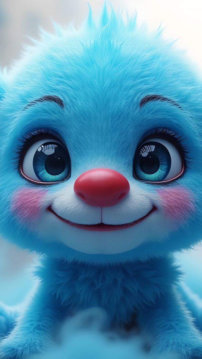 Edytor tapety: Niebieski stworek z czerwonym nosem