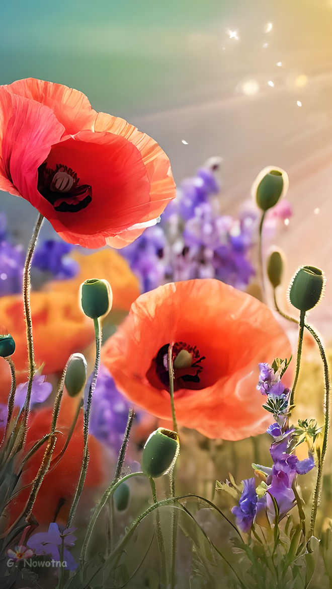 Edytor tapety: Rozkwitnięte czerwone maki w zbliżeniu