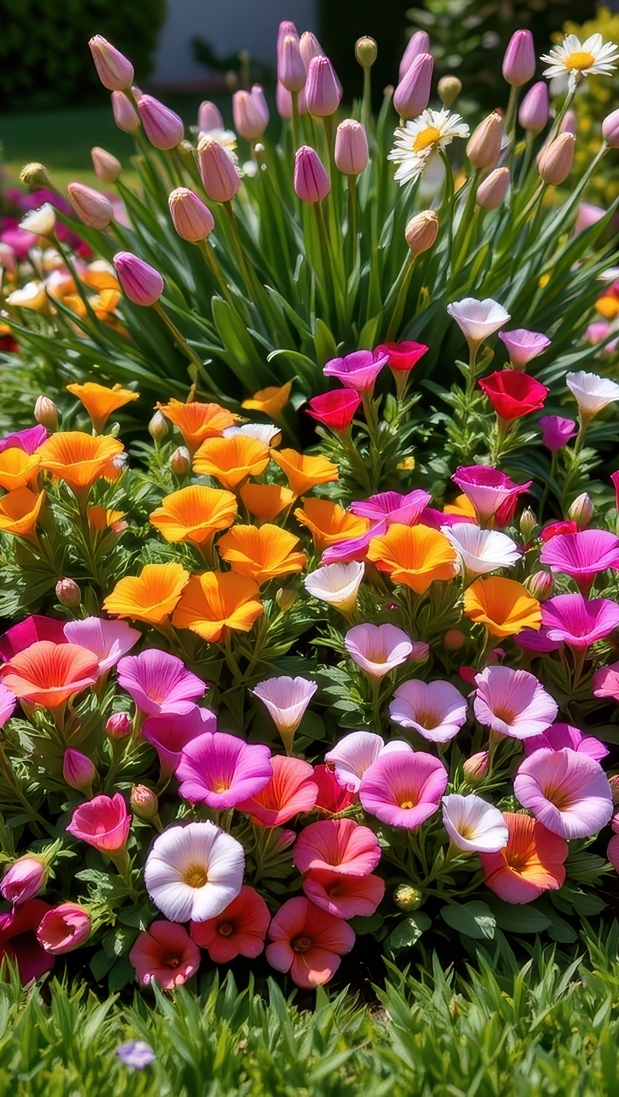 Edytor tapety: Klomb ogrodowy pełen kolorowych kwiatów