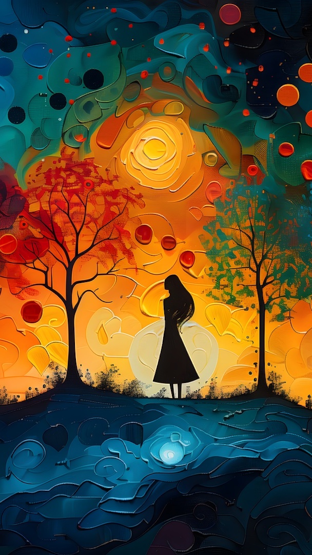 Edytor tapety: Dziewczyna wśród drzew w malarstwie