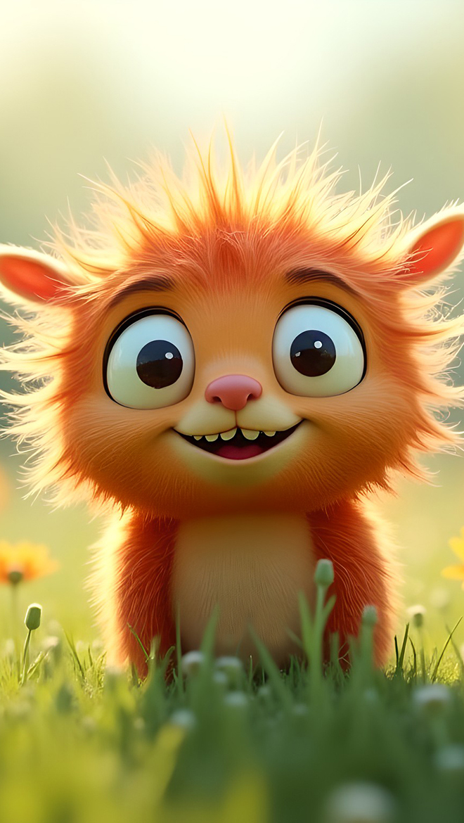 Edytor tapety: Wesoły pomarańczowy stworek na słonecznej łące