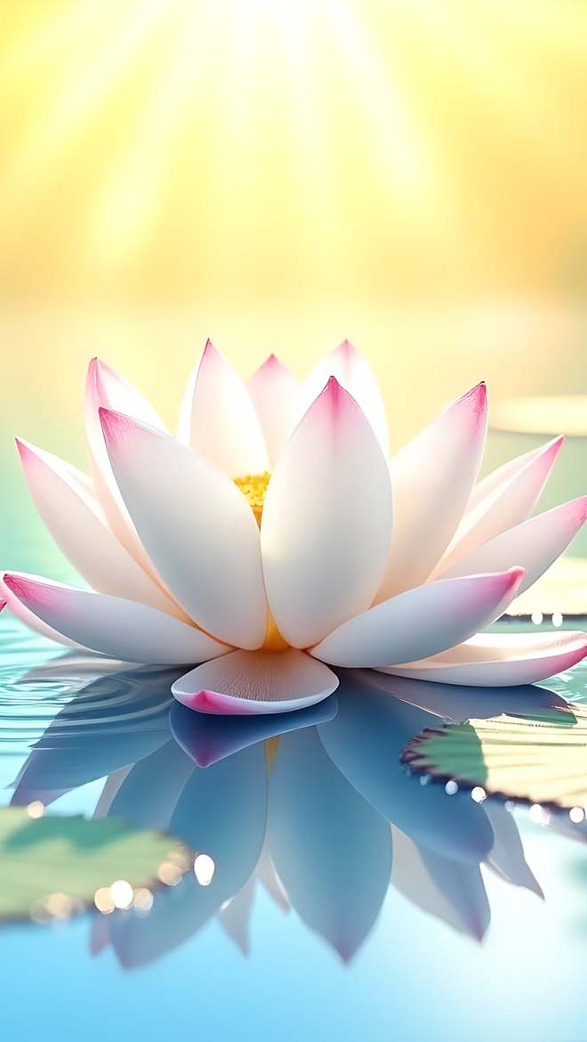 Edytor tapety: Biały lotos rozświetlony słonecznymi promieniami