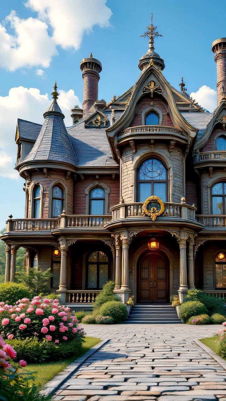 Edytor tapety: Aleja z różami prowadząca do zamku