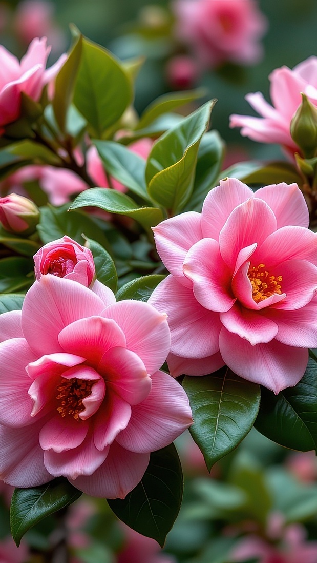 Edytor tapety: Różowe kwiaty z liśćmi w grafice