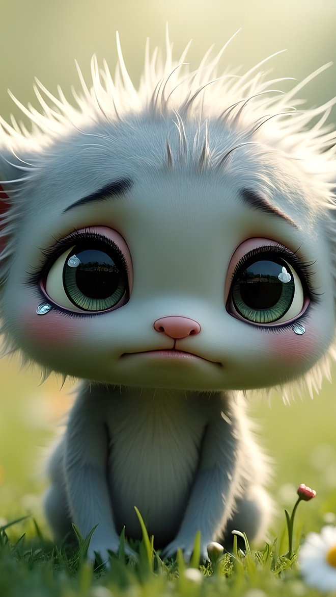Edytor tapety: Smutny szary stworek na trawie