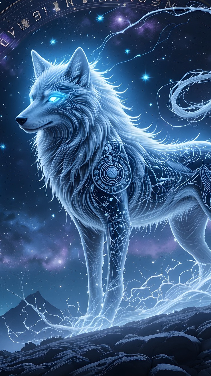 Edytor tapety: Wilk na skale na tle gwiazd