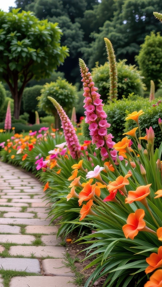 Edytor tapety: Kwiaty przy kamiennej ścieżce w ogrodzie
