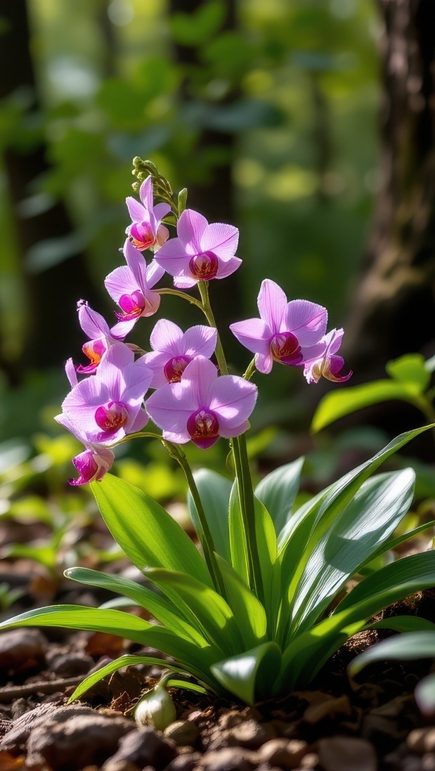 Edytor tapety: Rozświetlone różowe kwiaty storczyka