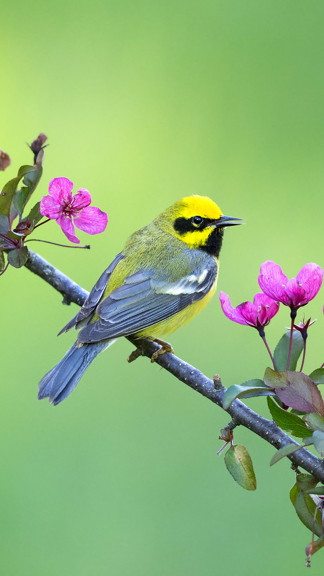 Edytor tapety: Lasówka niebieskoskrzydła i kwiaty na gałązce
