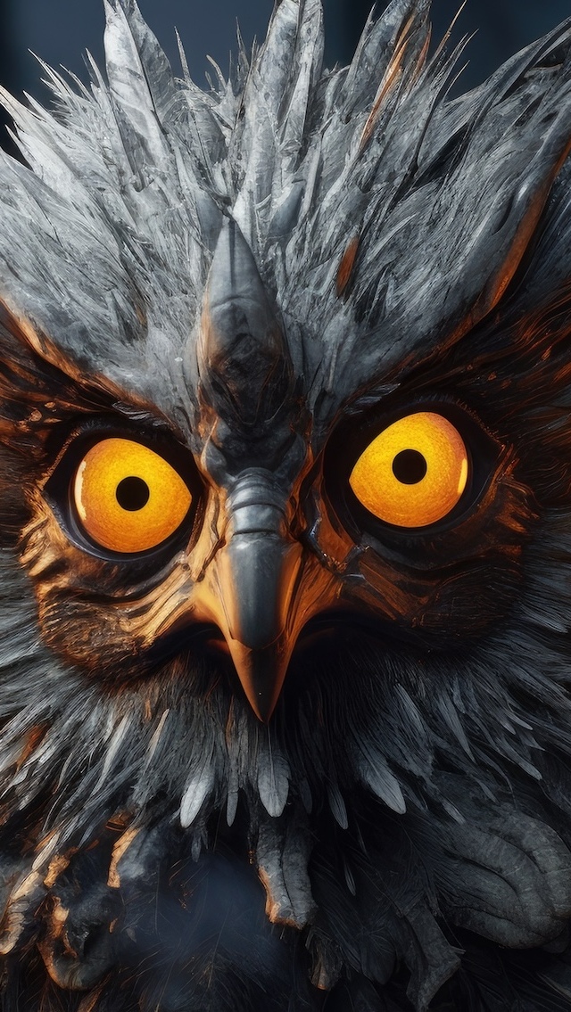 Edytor tapety: Nastroszona sowa o żółtych oczach