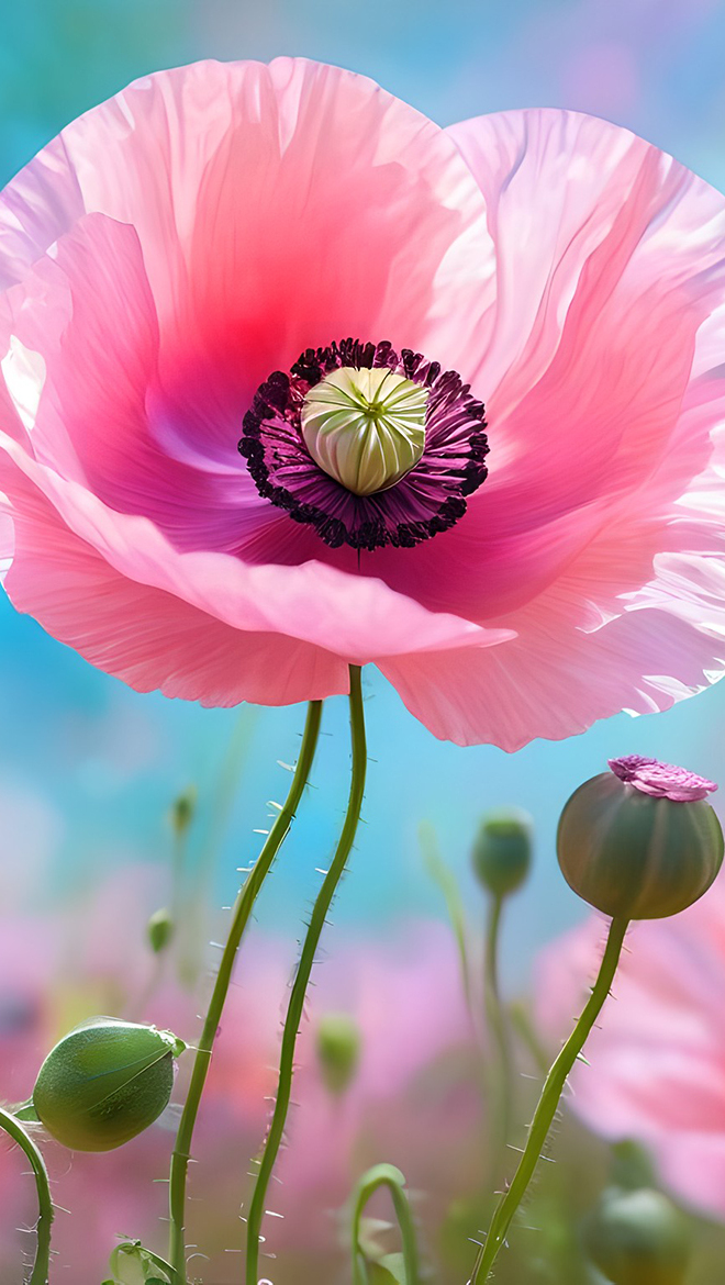 Edytor tapety: Rozkwitnięty różowy mak w zbliżeniu